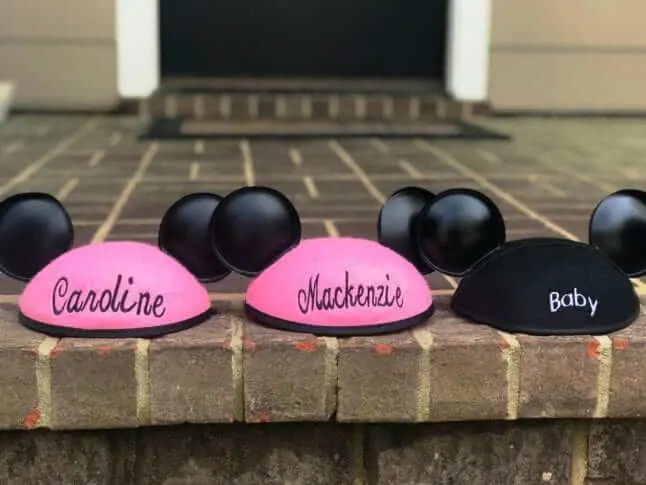 Use Mickey Mouse ears or hats as a cute Disney-inspired baby announcement photo idea.