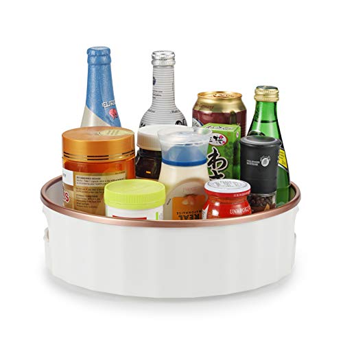 You can make use of shelf or desk space much better with a rotating storage system, such as a lazy susan or a carousel container. This means no moving everything to see what is behind. You simple give it a spin (not too fast!) and you can see each item on your tray.