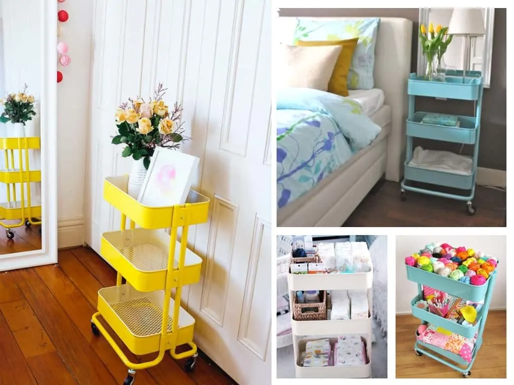 A Raskog trolley from Ikea has 3 tiers which you can use to organise your different supplies.