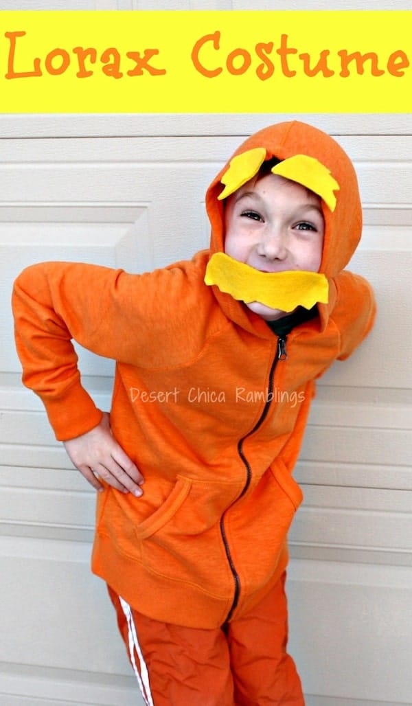 I love the simplicity of this Lorax costume – an orange hoodie and track pants teamed with some felt. So easy, especially if they already have the orange outfit!