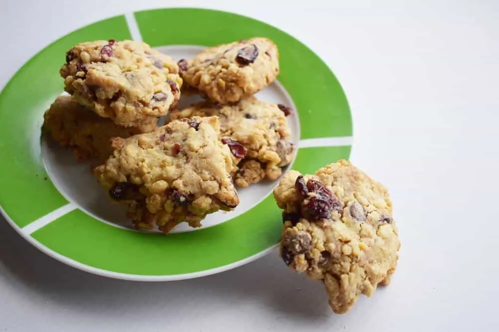These cranberry chocolate chip cookies are a sweet treat, loaded with flavour and puffed rice cereal to give kids an afternoon snack that is easy to make and surprisingly filling.