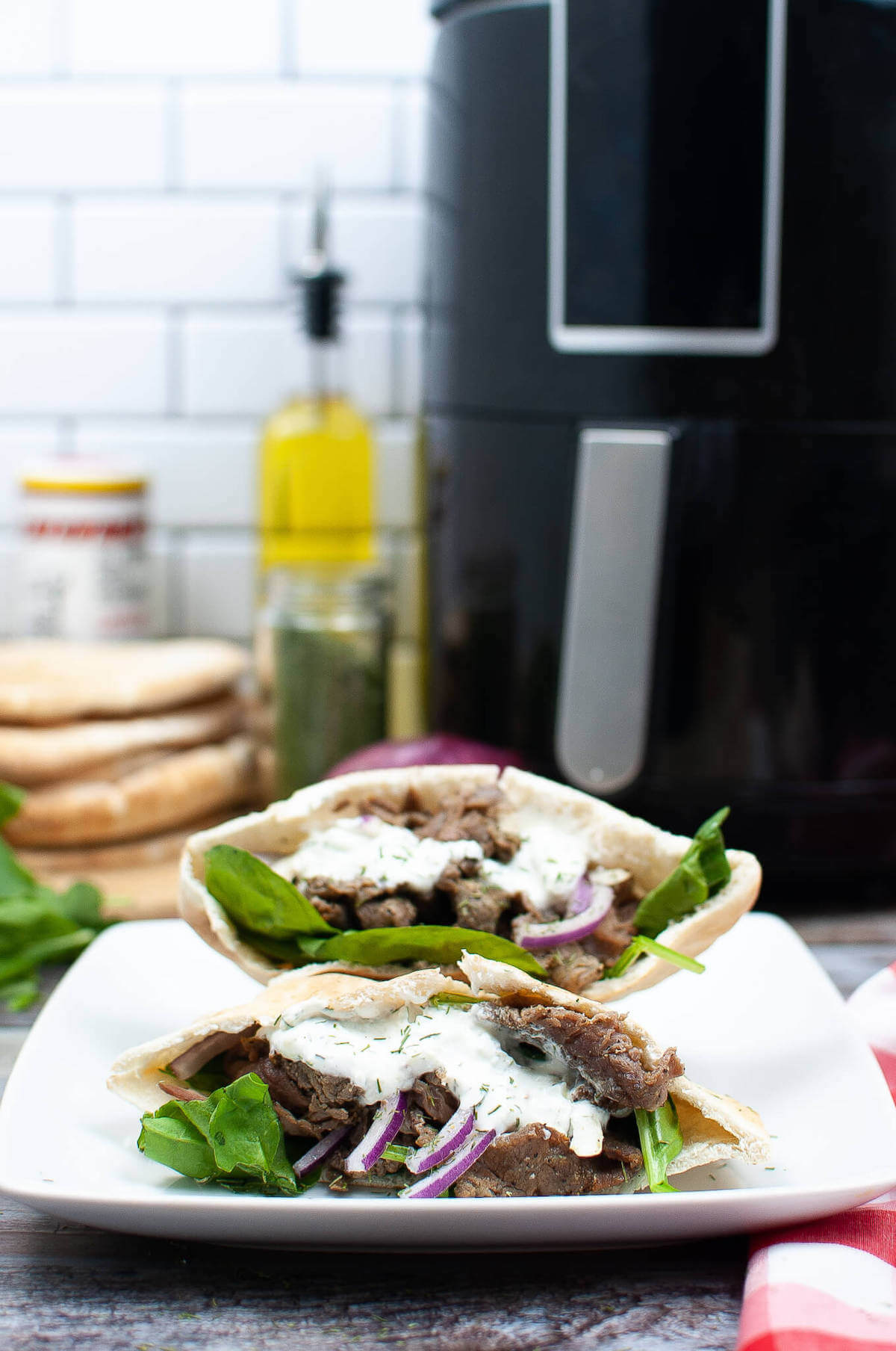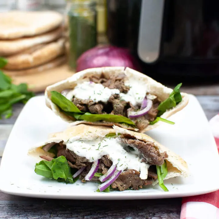 If you’ve never had steak gyros before, it is delicious! The beef in this air fryer steak gyros recipe is tender and just melts in your mouth.