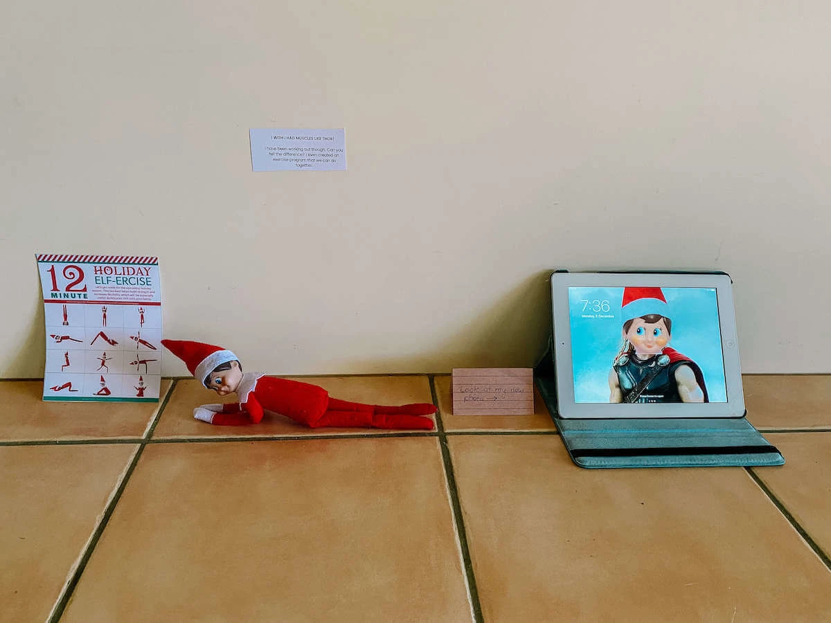 Then finding their iPad with a new screensaver of our elf’s face superimposed on the body of Thor.