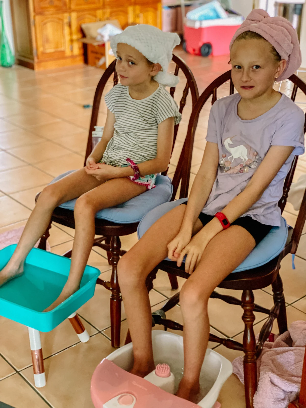 The girls had pedicures, painted nails and then picked out pretty dresses before getting their hair done. We took them out to dinner to celebrate school finishing for another year.
