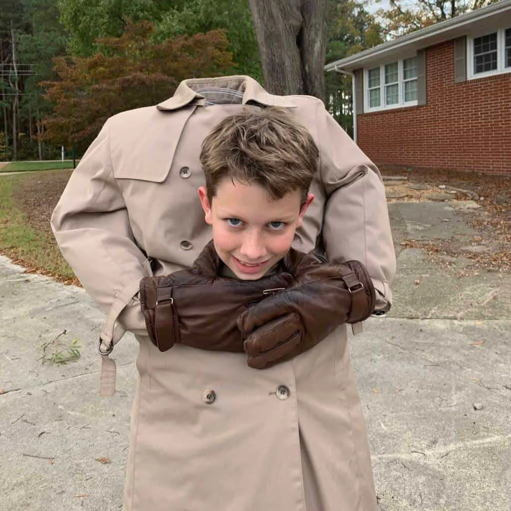 If you are looking for a scary kid’s costume for Halloween, this head in a jar costume is perfect! Or minus the jar as shown below for a headless look. Simple to do and very spooky for little boys or girls who want something more grown-up for Halloween.