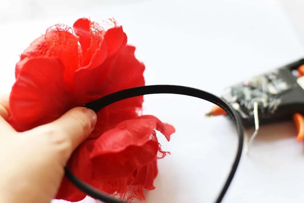 All you need is some makeup – red lipstick and black eyeliner will do the job if you want to keep it really easy! A plain headband and some fabric or paper flowers.
